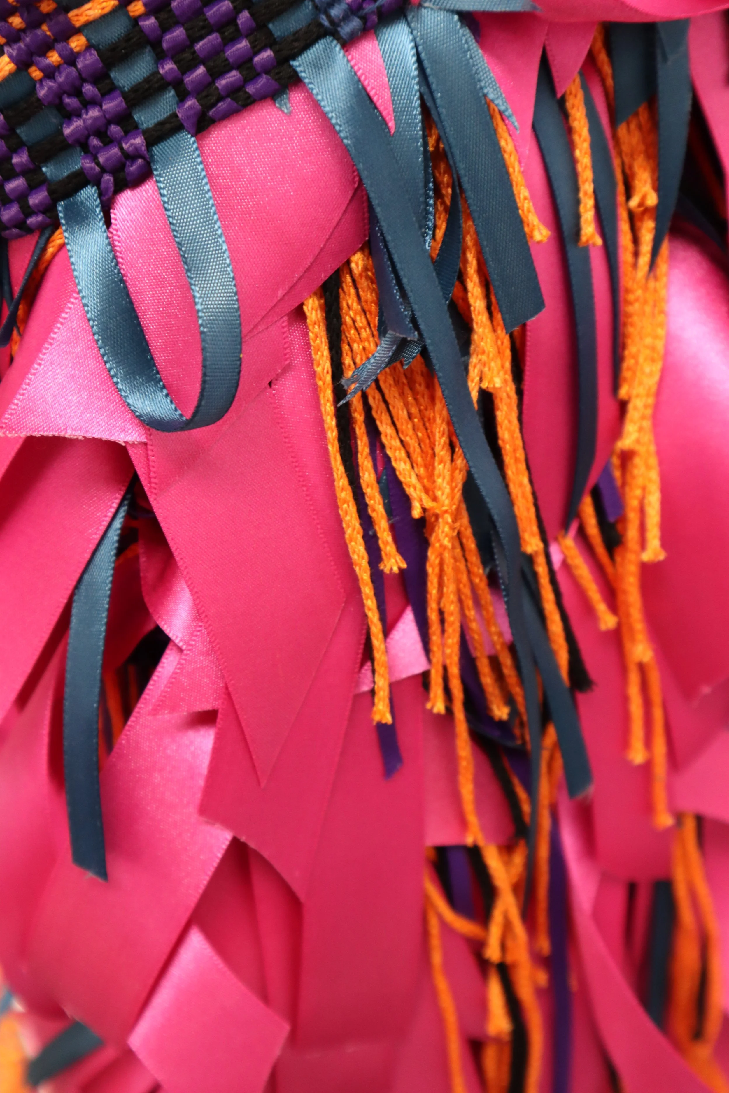 Handwoven cotton, ribbon and silk, trimming from from braiding machine at Museum of Science and Industry Manchester, antique wooden textile archive storage box. Photo credit: Toni Petraschk